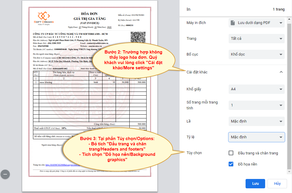 Lưu ý: Quý khách nên in trên trình duyệt Chrome hoặc Cốc cốc